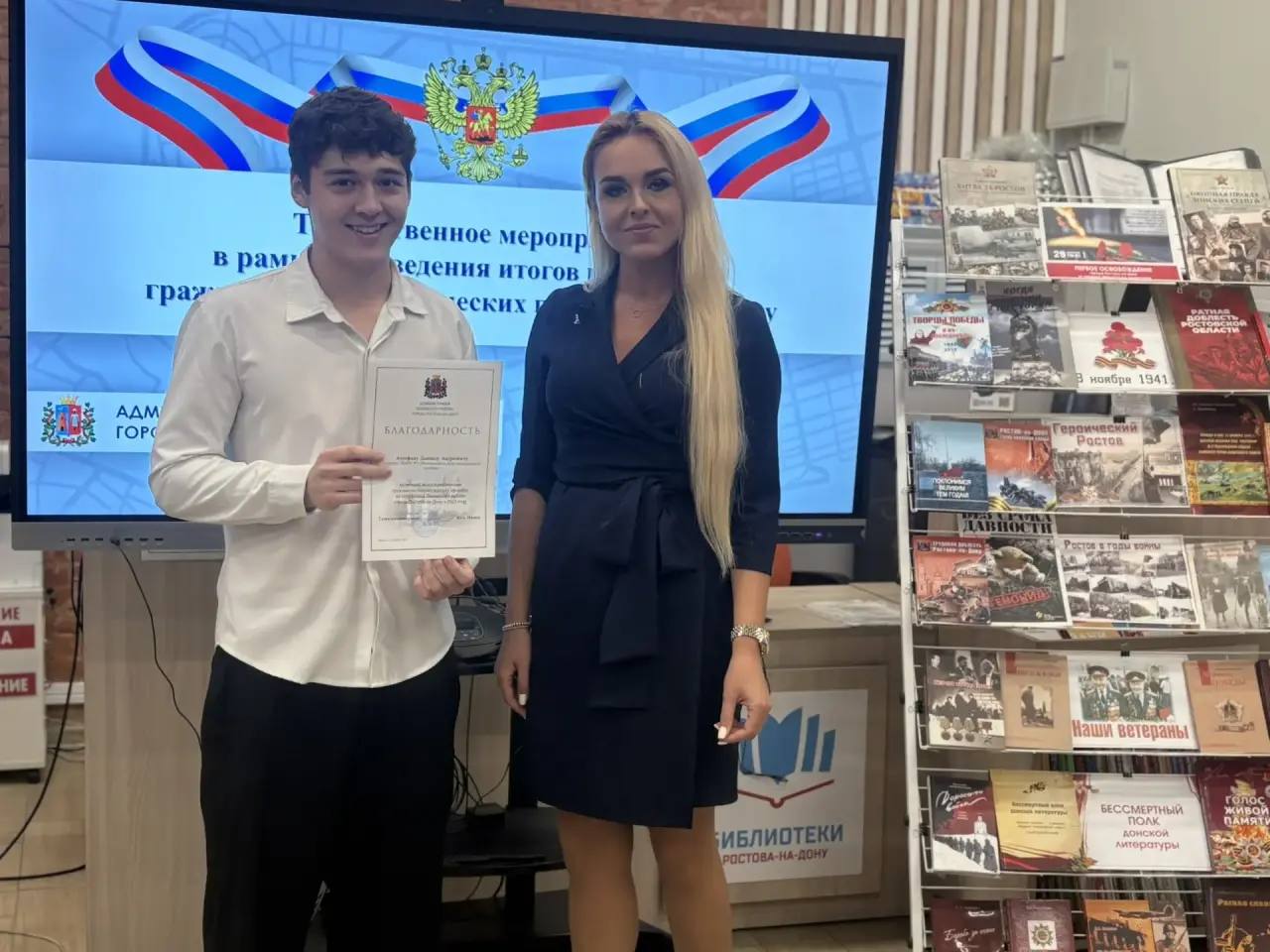 В читальном зале библиотеки им. М. Горького состоялось торжественное мероприятие «Героический Ростов», объединившее ценителей истории и культуры города.