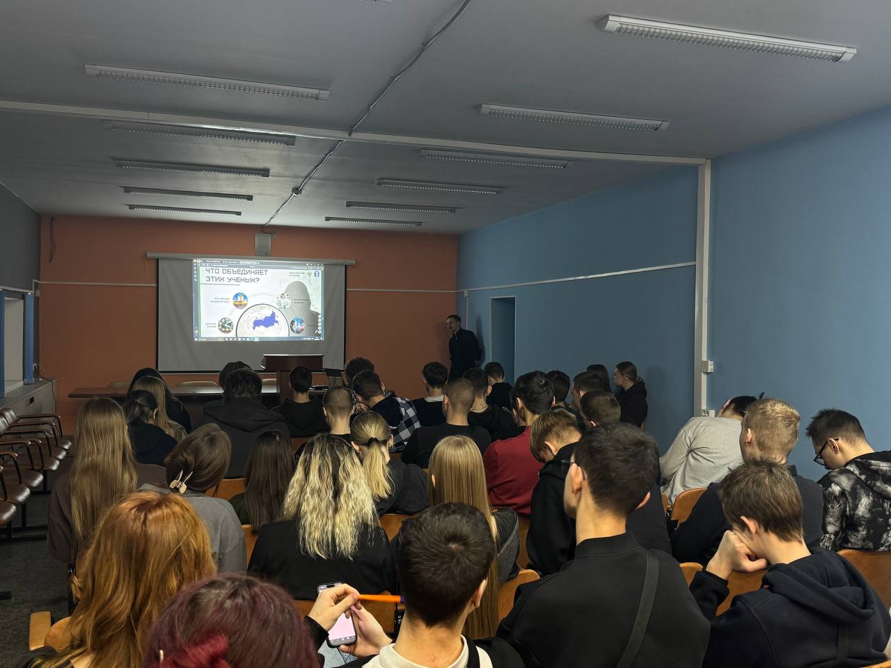 К этой важной дате преподаватель Толстопятенко Владимир Андреевич провел увлекательную интерактивную лекцию на тему «Мега прорывы российских ученых».